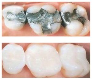 Cosmetic porcelain dental fillings can be colored to match the decayed tooth. White fillings provide an end result that is both aesthetically seamless and highly durable. Patients with existing metal dental fillings may consider having their fillings replaced with white ceramic fillings for a more natural look.