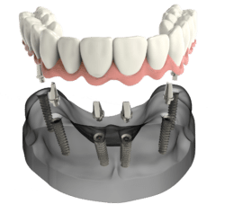 - Implant Dentures: Using as few as four dental implants, a denture can be securely anchored to the jaw. Implant supported dentures provide added stability, improved chewing function and a more natural looking result.